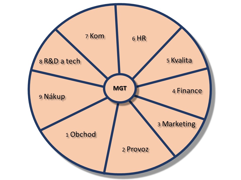 anebo chceme-li spojuje je a integruje do jednoho firemního celku „nultá“ oblast, která je doménou ředitele či majitele firmy. Jejím primárním posláním je zajistit, aby spolu oblasti hladce fungovaly. Jak na celofiremní úrovní skrze definování strategie a cílů, tak i v denní operativě.